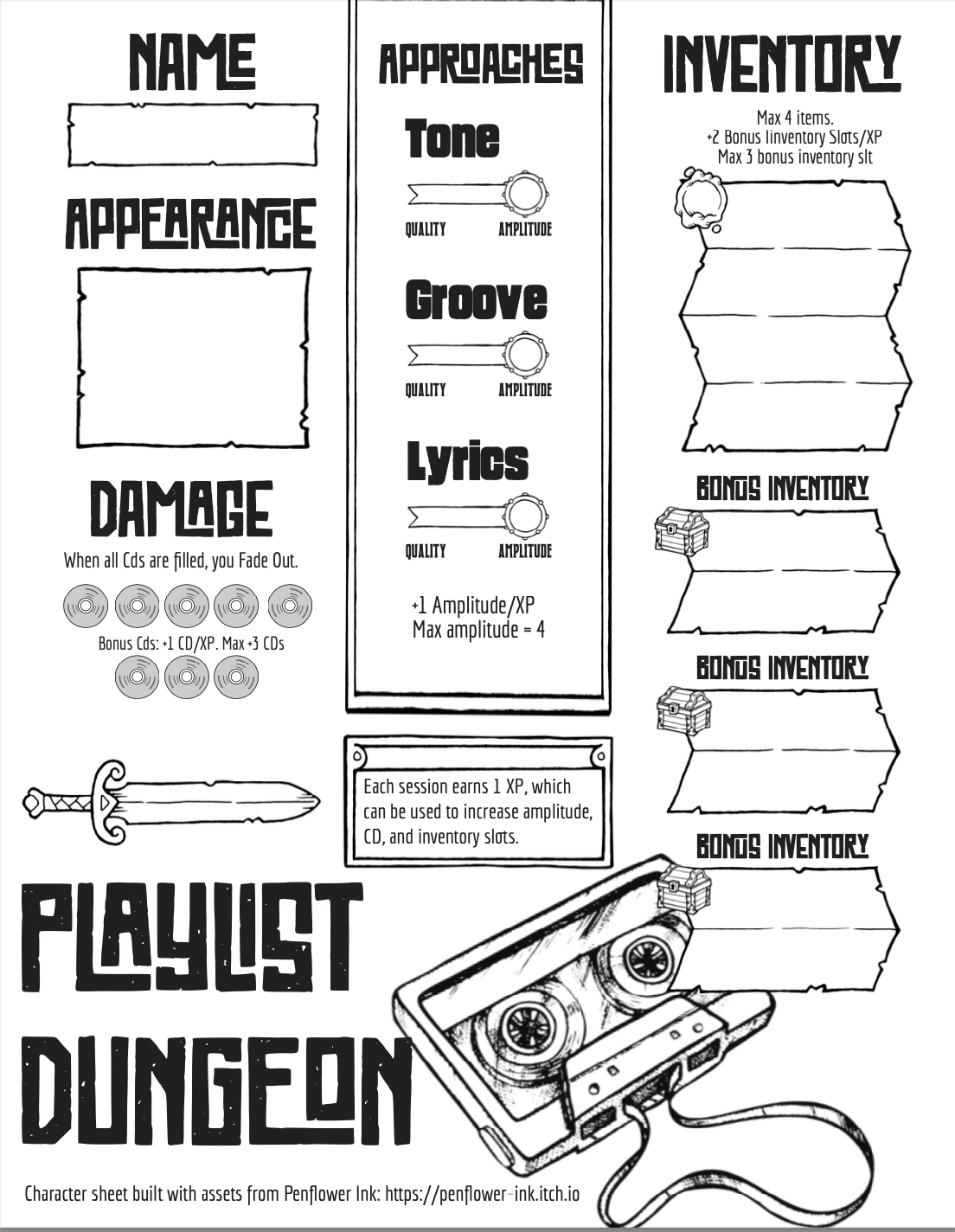 | Tags | Dungeon Crawler, micro-rpg, Music, One-page, Tabletop role-playing game |
